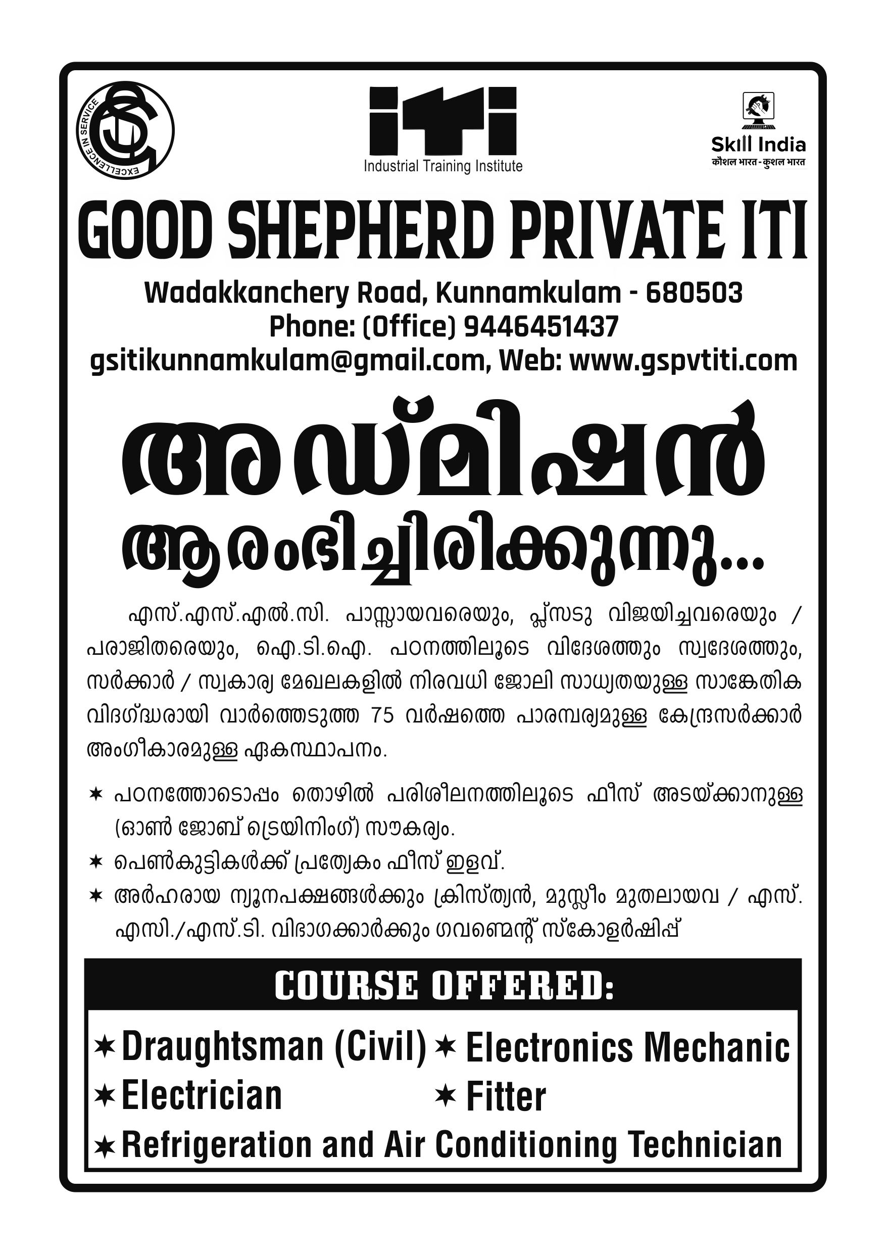 ADMISSION STARTED 2024 BATCH . TRADE --- DRAUGHTSMAN CIVIL (NSQF), ELECTRICIAN (NSQF), ELECTRONIC MECHANICS (NSQF), FITTER (NSQF), REFRIGERATION AND AIR CONDITIONING TECHNICIAN (NSQF). MOB NO:9446451437